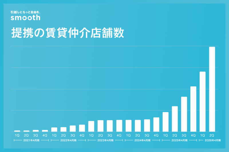 スムーズは、賃貸契約時に発生する初期費用を、クレジットカードを使わず分割払いにできるサービスである。就職前の新卒学生や転職する社会人など、「当面のキャッシュフローに不安はあるが、引越ししなければならない」というユーザーを中心に支持され、サービス登録者数は43万人を突破している(2025年12月現在)とする。